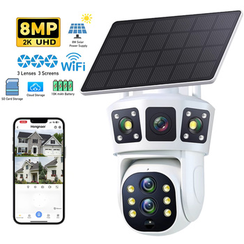 8W energia solare 360 ° Wireless Wifi Audio Auto Tracking 8MP telecamera di sicurezza 3 obiettivi di sorveglianza esterna bidirezionale Audio dati Cloud