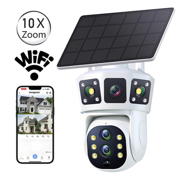 2K 10X Zoom 3-Lens açık güvenlik kamera 10000mAh pil 8W güneş enerjili PTZ WIFI bağlantısı bulut veri depolama seçenekleri